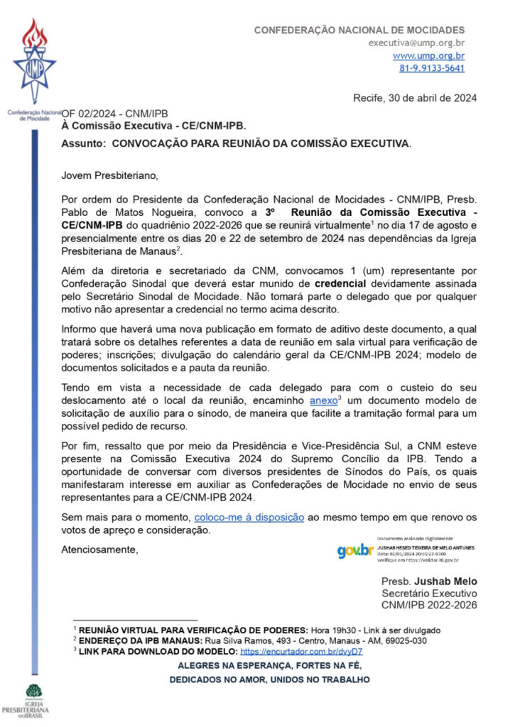 UMP marca presença na 40ª Reunião do Supremo Concílio da IPB