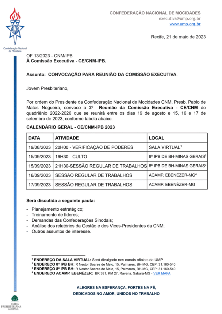 Convocação para reunião da Comissão Executiva