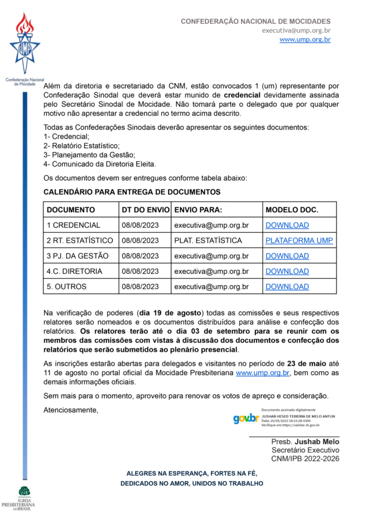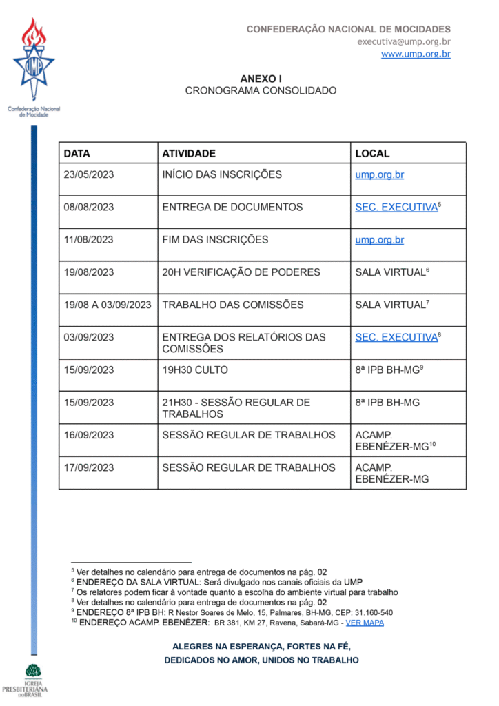 UMP marca presença na 40ª Reunião do Supremo Concílio da IPB